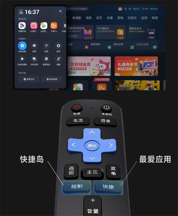 此外,天猫魔盒 8 Pro还拥有快捷岛设计:可以快速打开所需要的应用程序,使用更便捷高效;添加最喜爱的应用后,可以通过遥控器“快捷键”直接打开最爱应用;应用切换功能可通过长按遥控器“主页键”唤醒,实现快速切换应用、关闭单个或全部应用。