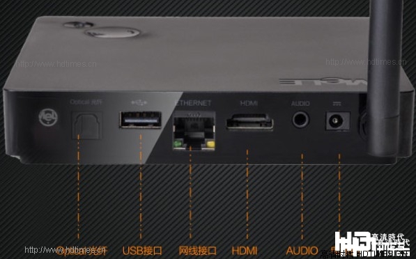 外观上,迈乐M8采用高强度工程塑料材质,散热性能不错,机身设计简洁、大方,经典黑色装饰;接口设置丰富,配置了HDMI高清接口、USB接口、AV视频接口、光纤接口等多种主流接口,可完美解码各种主流格式影片,在迈乐M8机身背部配置了一根高增益天线,信号传输稳定,视频能顺畅播放。