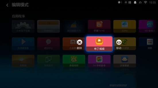 3、紧按(按住后先不松开)小米小盒子遥控器上的“OK”键选中布丁视频;然后系统桌面会跳出如下窗口;