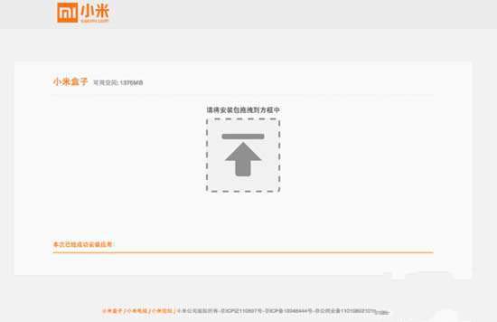 第四步:把已经下载下来的小米盒子第三方软件包拖入网页安装方框中;