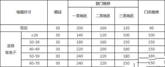 广东、昆明、上海、深圳、温州和新疆分公司,因当地家用电器行业协会有明确收费标准,实行当地检修及安装收费标准。