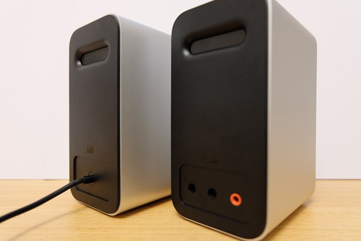 音箱的后面上部的长条设计为小米蓝牙电脑音箱的双低音辐射盆,以增强音箱的低音效果,实际体验下来,音箱的低音效果也十分够用。