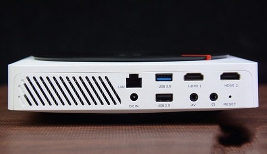 极米Z3S为用户提供了TF卡槽、电源接口、两个USB 2.0接口、新增USB 3.0接口、两个HDMI输入接口、硬件开关、音频光纤接口、AV接口、有线网口和耳机接口。
