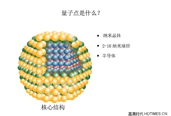 量子点(QD)是一种非常前沿科技的纳米材料,其晶粒直径在2-10纳米之间。量子点的光电特性很独特,它受到电或光的刺激,会根据量子点的直径大小发出各种不同颜色的纯正高质量单色光。量子点替代传统荧光粉,使得液晶显示背光更加纯正,电视屏幕端色彩显示更加丰富。